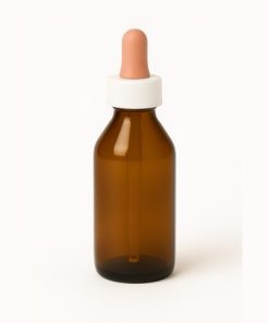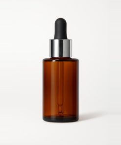 FRASCO ROUND GLASS AMBAR BOCA 20/410 X 30 CC C/PIPETA NEGRA PLATA