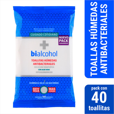 TOALLAS SANITIZANTES BIALCOHOL X 40 UNIDADES PORTA